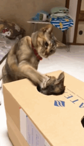 動画では、“もぐらたたき”の中にいるぽぽちゃんが穴から顔を出すと、みじゅちゃんが外から猫パンチを浴びせますが、叩かれたぽぽちゃんも負けじと穴から反撃。