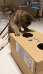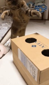 「段ボールに穴を開けて遊べるようにした」とは聞いていたという@popo_meme0802さん。