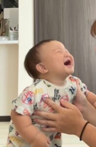 しかし、ママさんを見つけると、すぐにニコニコに。ママさんはずっと隣にいたといいますが、目を開けた瞬間にママさんを目に入れないと不安になるようです。
