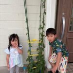 小1息子くんと朝顔の花 (@leorioaogramさんより提供)