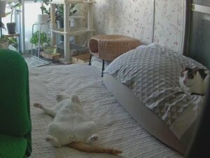 留守中の猫ちゃんたちの安全を確認するため、ペットカメラを設置することに。