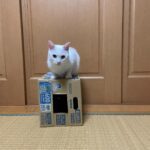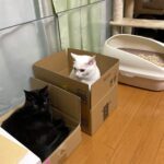 ダンボール箱に乗る白猫。しかし、箱の中をよく見ると…「ガチ目にびっくりした」「紛れてる…」