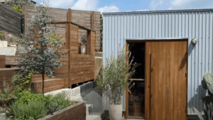 採用した素材は、ガルバリウム(亜鉛・アルミ・シリコンの合金)と木材の組み合わせです。