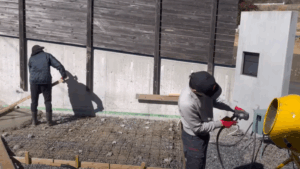 コンクリートで土間打ち(@machikane_baseさんより提供)