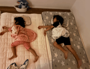 子どもたちの見事なシンクロ寝相。その1枚には、親にしか見られない子育ての宝物のような瞬間が詰まっていました。