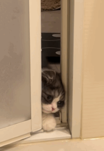 最初はドアの外でおとなしく待っていたのが、少しだけ隙間を開けてみると、顔をねじ込んで覗き込むようになったといいます。