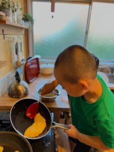 オムレツを作る長男くん(@izumo88megusanさんより提供)