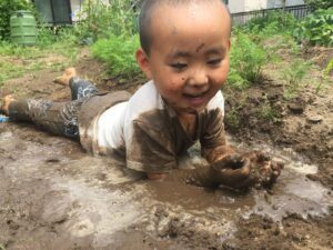 泥温泉づくりにハマっていた3歳のころ(@izumo88megusanさんより提供)