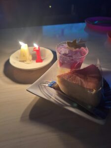 ロウソクは、41歳にちなんで4と1の形をしています。