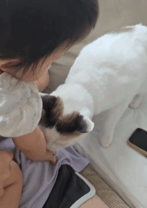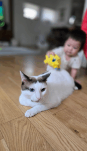 @tsukune216さんが、赤ちゃんに優しく接する猫の様子をXに投稿すると「優しい世界」「保育士ならぬ保育猫」などのコメントが寄せられ、話題になっています。