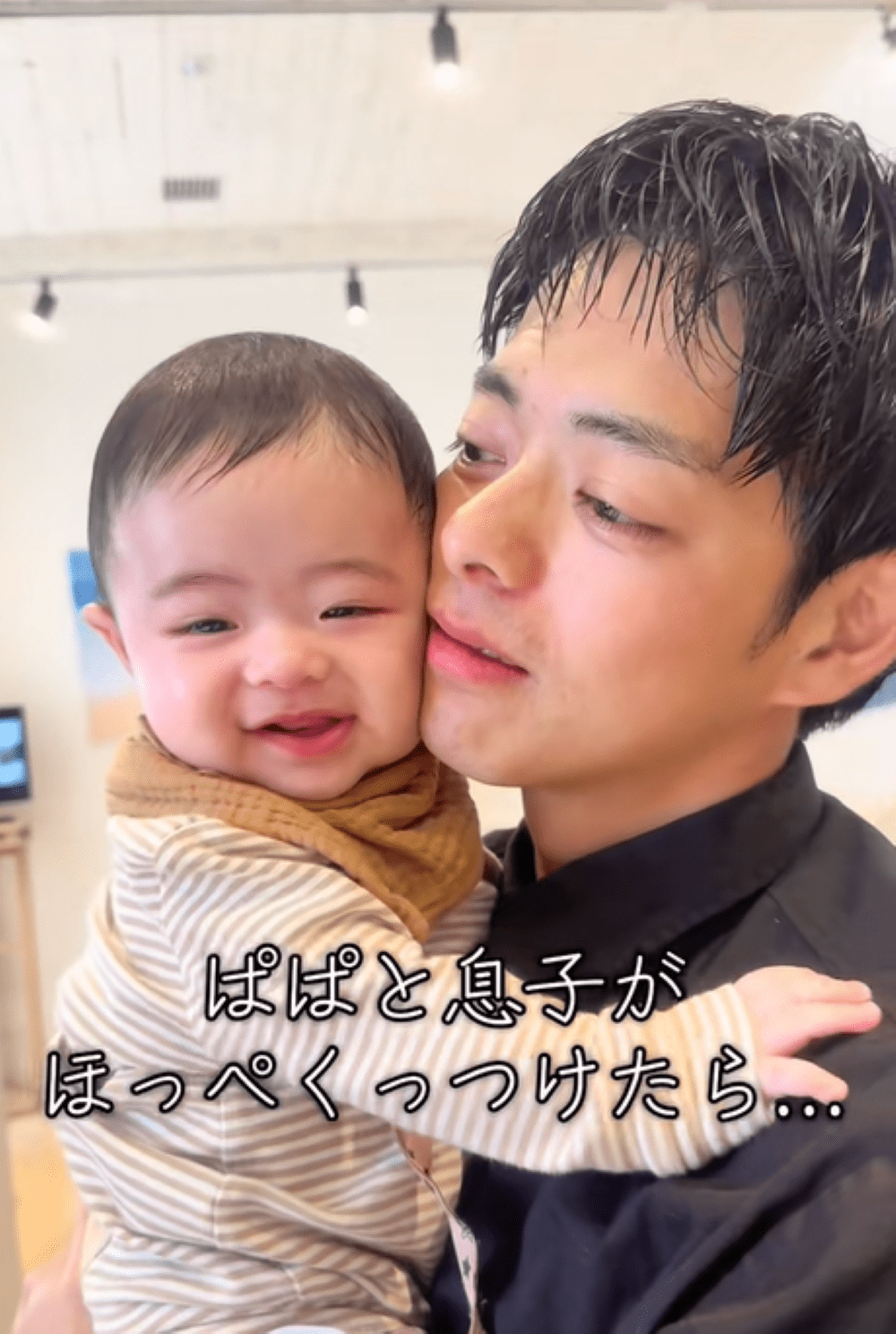 息子を抱き上げ、頬ずりするパパ。次の瞬間、“まさかの展開”に「社交ダンスしてるみたい」「可愛い」