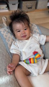 じいじに「ビジュアル系」と言われた赤ちゃん 4ヶ月後の姿に「バンド組んでくれますか?」「前髪もオシャレさん」