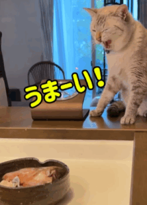@ccchisa76さんが、愛猫の様子をInstagramに投稿すると「えらい!」「かわいいお客さん」「美味しそう」などのコメントが寄せられ、話題になっています。