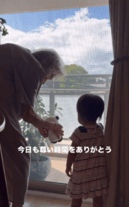 動画に登場するのは、1歳の娘さんとひいおばあちゃん。