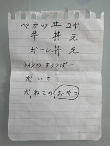 買い物メモに記載されていたのは、次のようなメッセージ。
