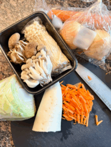 野菜の皮やザル、ボウルなどで「てんてこまいになる」と笑いながら振り返ります。