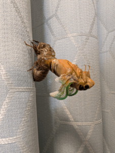 投稿された内容は、カーテンに貼り付いたセミの抜け殻。