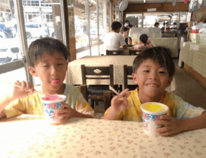三つ子くんたちは、今年から小学1年生になりました。小学生になって初めての夏休みは、2人1組でママさんの実家に2週間、帰省したそうです。