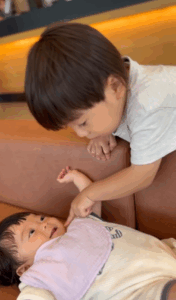 家で遊んでいるときも、妹ちゃんが泣くとおもちゃであやしながら積極的に遊んでくれます。