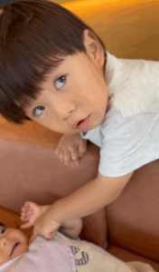 3歳のお兄ちゃんと、生後5ヶ月の妹ちゃんを連れてお出かけしていたママさん。