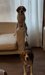 独特なポージング①(@beagle_koma92_orin91さんより提供)