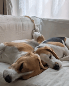 くっついて寝る兄妹(@beagle_koma92_orin91さんより提供)