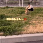 トカゲがいそうな場所へジャンプしているむぎくん(@bashiko214さんより提供)