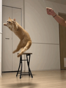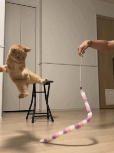 猫じゃらしやリボンなどの動きに合わせ、華麗にジャンプをキメる姿は、まるで新体操選手のようですね。@uniuniuni20250322さんは「どんなおもちゃでも遊んでくれるので、たくさん買ってあげたくなります!」と話してくれました。