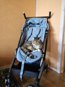2枚目には、猫ちゃんがベビーカーに乗ってお休み中の様子が写っていました。