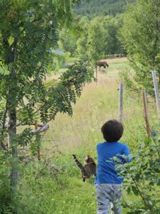動物と一緒に育ってきたため、牛でも犬でも怖がらずどんどん近づいていくそうです。