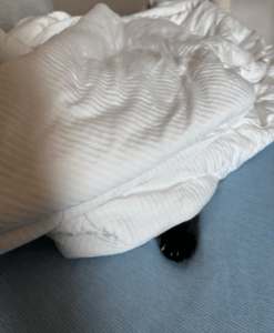 しかし、今回はガスの検査で、業者の方が室内まで入ってきたため、部屋の中をウロウロしたあと飼い主さんの布団の中にすっぽりと隠れてしまいました。