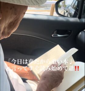 すると、図書館から本を借りてきたおじいちゃんは「今日は車だから重い本」と、ウキウキしながら読書を始めました。