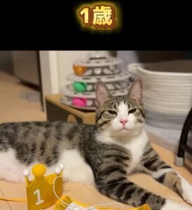 保護猫のにものちゃんが1歳の誕生日を無事に迎えられたことを記念して、これまでの成長の様子をまとめた@nimonochさん。