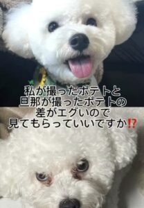 @potechip2525さんが、夫婦で撮影した愛犬の表情の違いをTikTokに投稿すると「旦那さん何したww」「別犬(笑)」「感情豊か」などのコメントが寄せられ話題になっています。