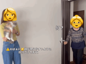動画では、おばあちゃんが「何?」と言いながら部屋に入ってくるところから始まります。