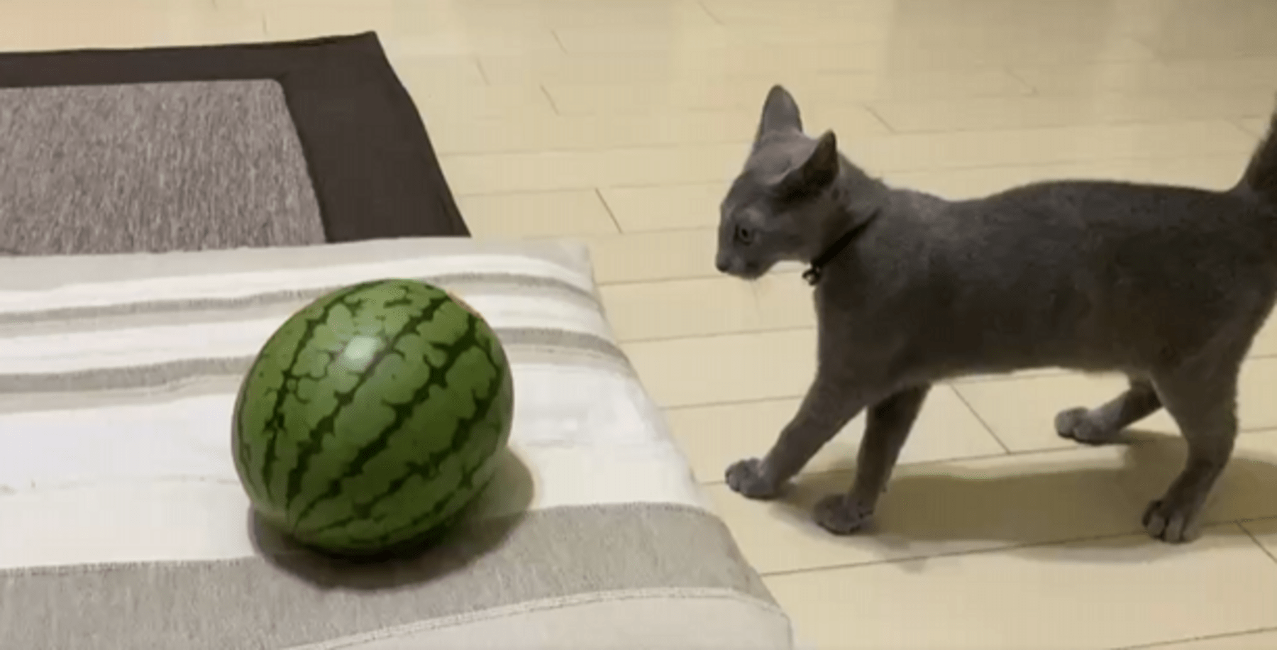 スイカを見つけた猫のまさかの行動に仰天!「笑えるw」