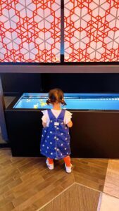 水族館で金魚に釘付けの娘さん①(@morico_moさんより提供)