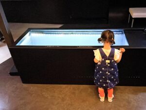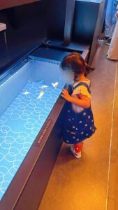 テーマパークで水路の魚に見入る娘さん②(@morico_moさんより提供)