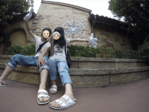 @2girlsmama_umeさんが投稿していたのは、あるテーマパークの同じ場所で撮影した2枚の写真。