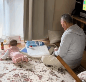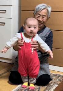 今回話題になったのは、生後7ヶ月~10ヶ月頃の@miimegu2211さんの娘さんが、おじいちゃんとおばあちゃんと過ごす様子をまとめた動画です。