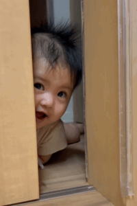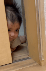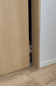 ママさんは「必死に隙間から顔を精一杯近づけて、こちらを見てる姿に笑ってしまいました」と振り返ります。