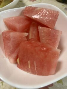 驚きの事実をお母さんの友人にも伝え、写真も送りました。どうやら、お母さんの友人が同じときにもらったトウガンも、同じように中身がスイカだったようです。