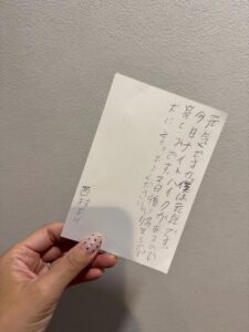 自然学校に行っている小学5年生の息子さんから手紙が届きました。手紙は「元気ですか」と始まり、元気に過ごしていることや楽しみにしていることなどが書かれていました。