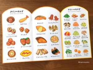 遠足のお弁当は、この一覧をきっかけに自作の絵本を広げながら選ぶことが多いといいます。
