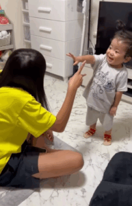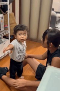 お姉ちゃんに向かって「最初はグー!」と手を握り、飽きるまで何度も繰り返し挑戦する無邪気な姿も!