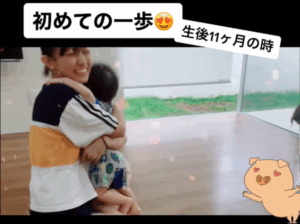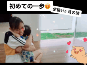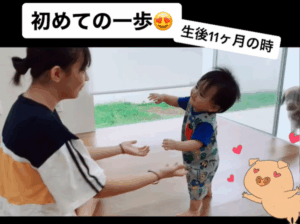 次男くんの初歩きに全身で喜びを表現する長女さん