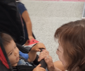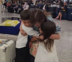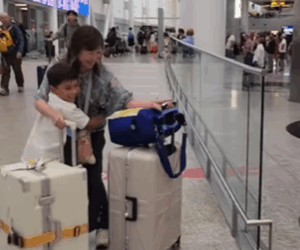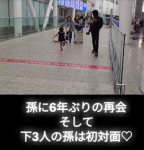 5歳の長女さんと3歳の次女さん、1歳6ヶ月の次男さんはおばあちゃんと初対面でした。動画には、空港でおばあちゃんを出迎える様子が収められています。