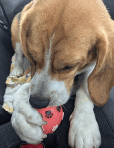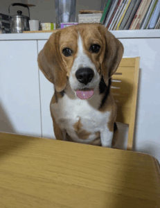 写真に写っているのは、3歳のオスのビーグル犬のまるくんです。