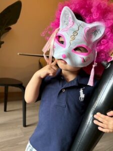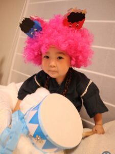 以来、アフロのかつらやさまざまなお面を使って、鬼になりきる遊びにハマっているのだとか。