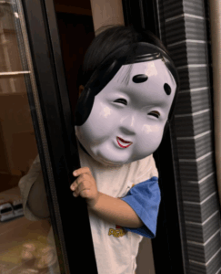 そのお面は、以前100円ショップで息子さんが「欲しい!」と選んだ“オカメのお面”でした。